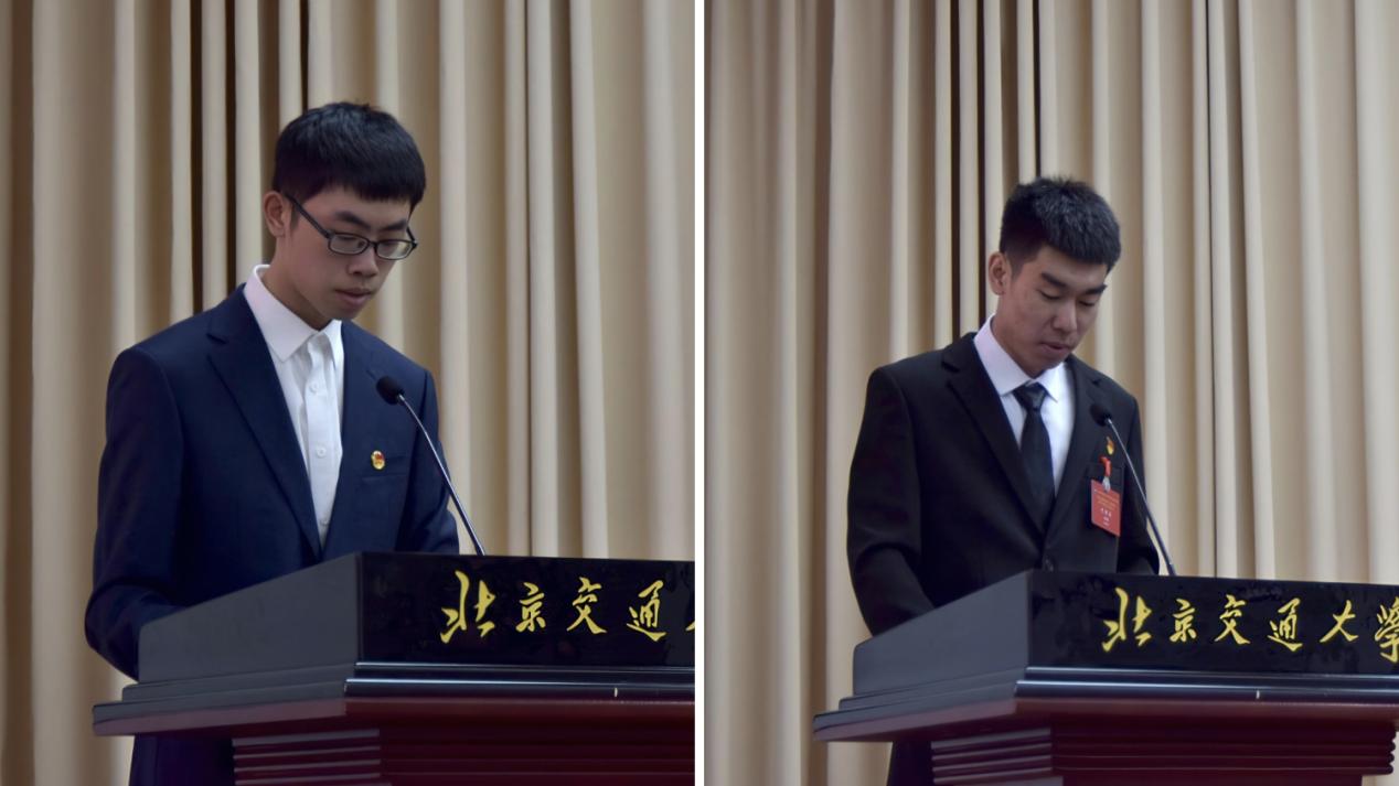 学院学生分会执行主席王梓帆代表第二十六届学生分会作《信心凝聚力量,实干谱写华章,做有理想、敢担当、能吃苦、肯奋斗的新时代好青年》为主题的工作报告;学院研究生分会主席张林煜代表第二十六届研究生分会作《勤学善思,锐意进取,攻坚克难,砥砺前行,做新时代的挺膺者》为主题的工作报告。大会听取并审议了工作报告和提案报告。