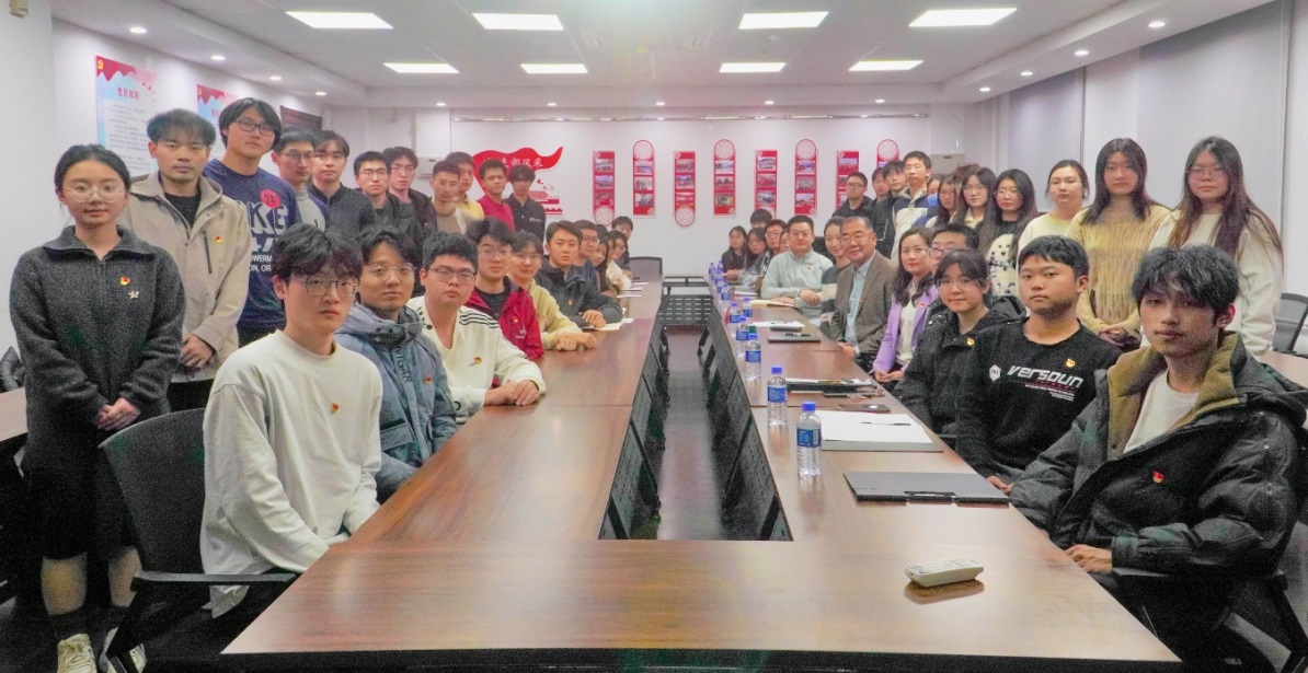 2024年12月5日下午,学校党委副书记姚念龙为威廉希尔体育本科生第四党支部党员讲授专题党课,并参加威廉希尔体育本科生第四党支部与威廉希尔体育2201团支部学习交流活动。威廉希尔体育学生工作组全体成员和党、团支部全体成员参加活动。专题党课和支部活动由威廉希尔体育党委副书记胡祥萍、本科生第四党支部书记李治锦主持。